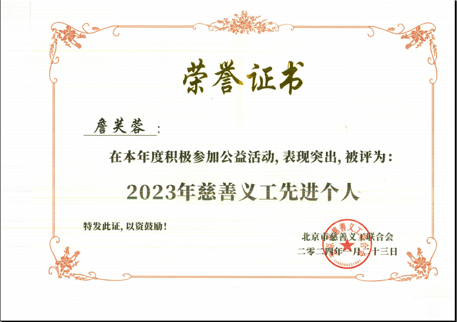 热烈祝贺---詹总被评为“2023年慈善义工先进个人”
