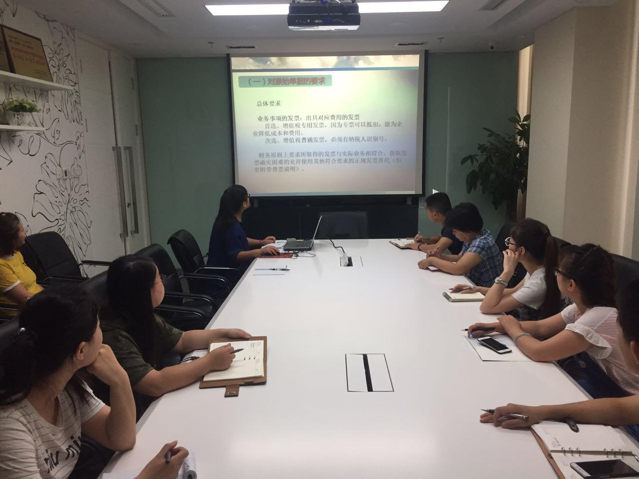 71日,国家税务总局关于发票的新规出台以后,公司财务部按照新规的精神对内部费用报销进行了规范,新规实施两个月以来,财务部们针对各部门在费用报销中存在的问题进行梳理,对开票过程中存在的疑问进行汇总整理,形成规范的培训文档,并对各部门相关人员进行了系统的培训。参会人员认真学习,针对有疑惑的地方及时提问,培训人员对各种问题认真解答。收到良好的培训效果。
