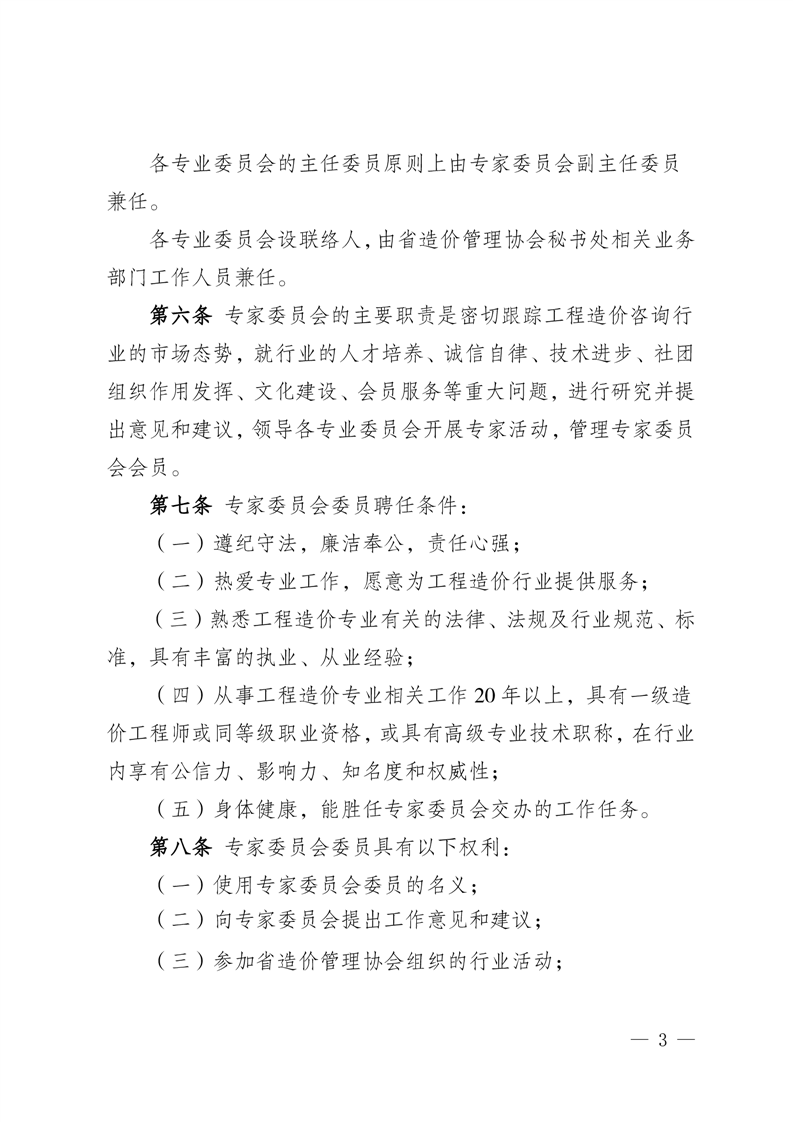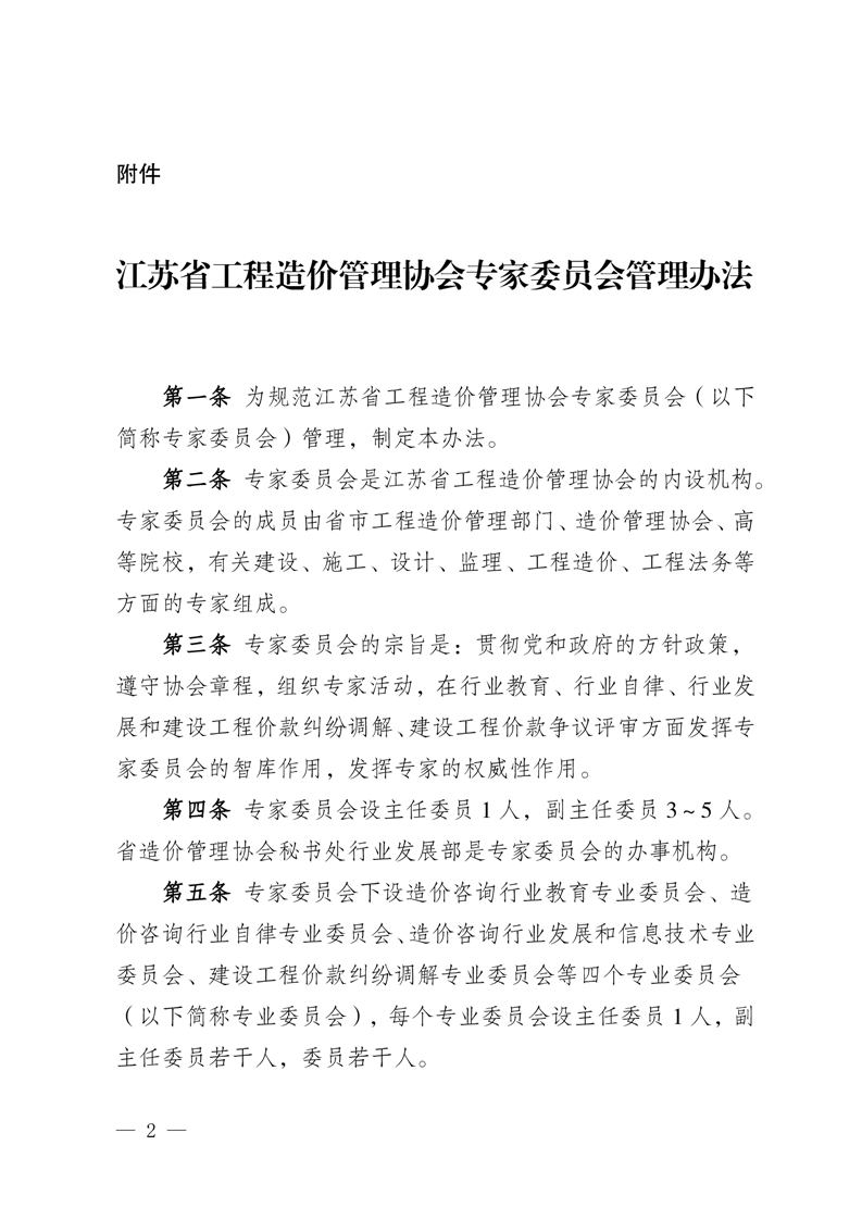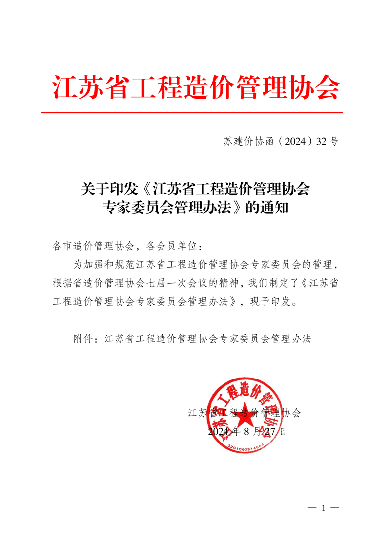 江苏省工程造价管理协会关于印发《江苏省工程造价管理协会专家委员会管理办法》的通知