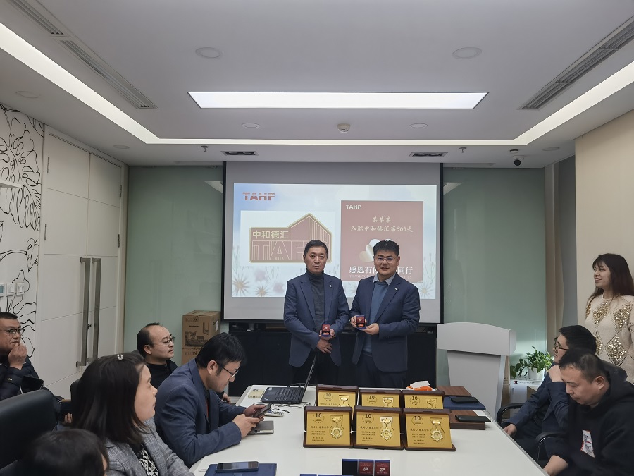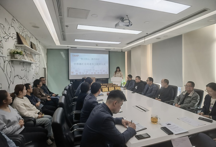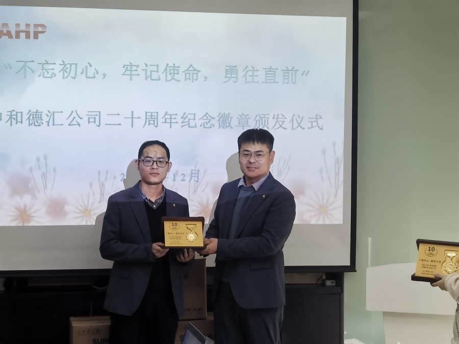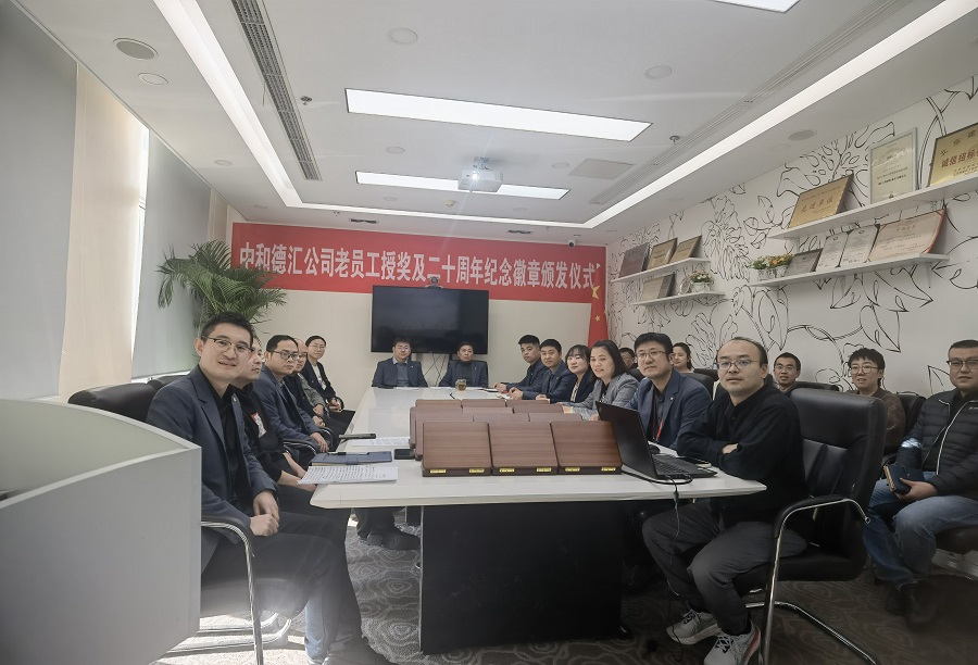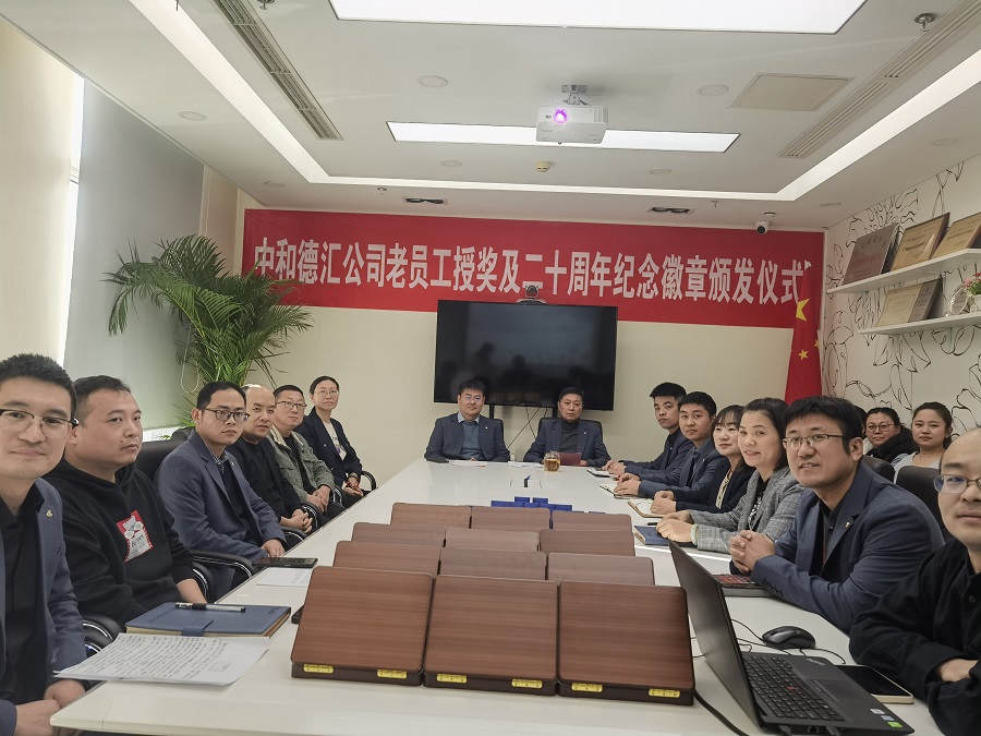 12月20日,中和德汇公司组织老员工授奖及二十周年纪念徽章颁发仪式。