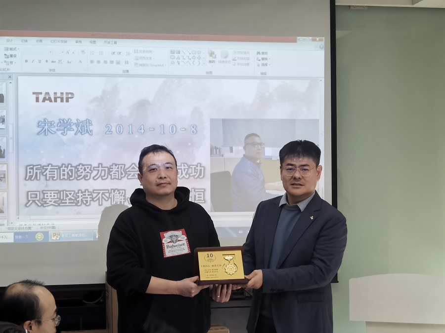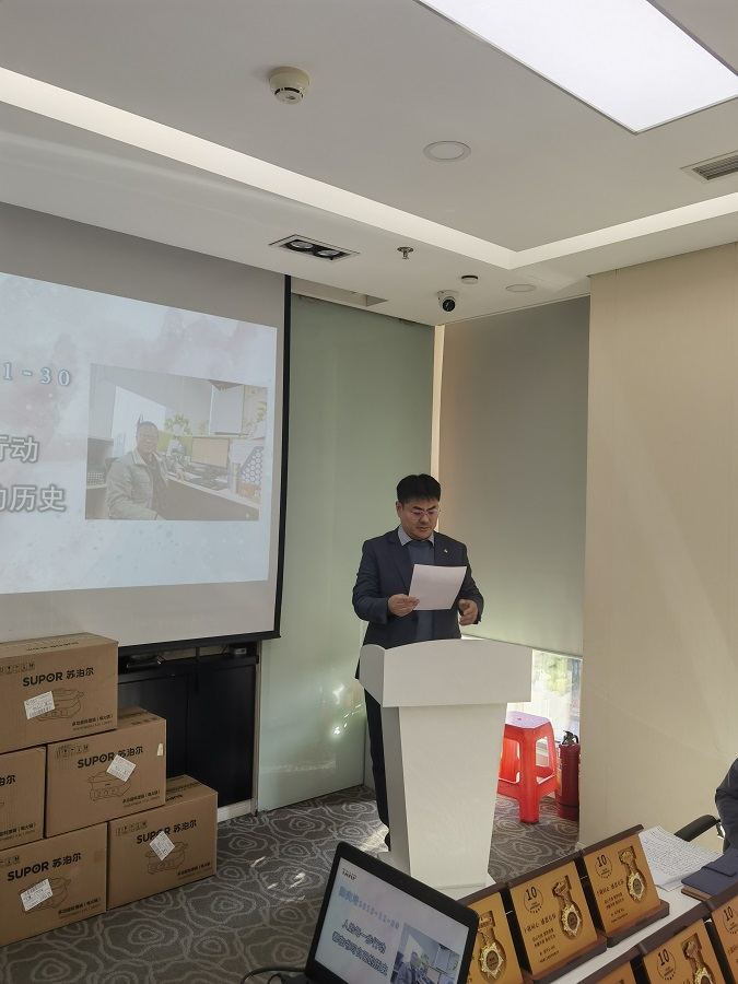 首先公司总经理宣读了入职十周年老员工名单,随后领导进行了授奖,授奖代表张开心、宋学斌、李勇、刘光涛、陈奕培、单宏兰分别进行了发言,然后公司董事长发表了讲话。