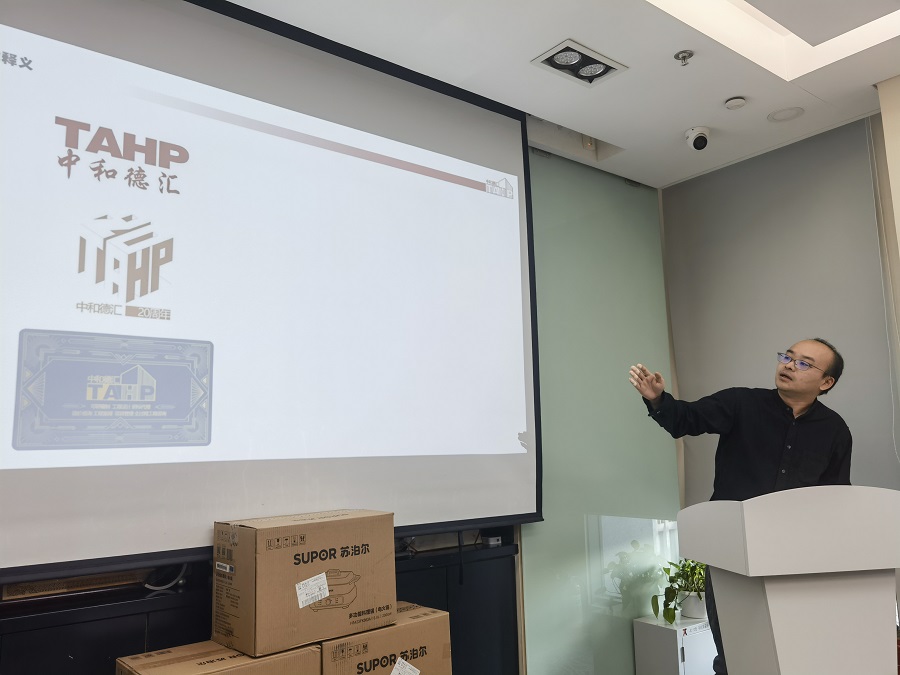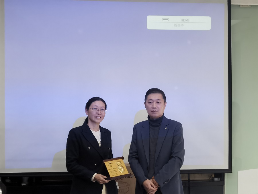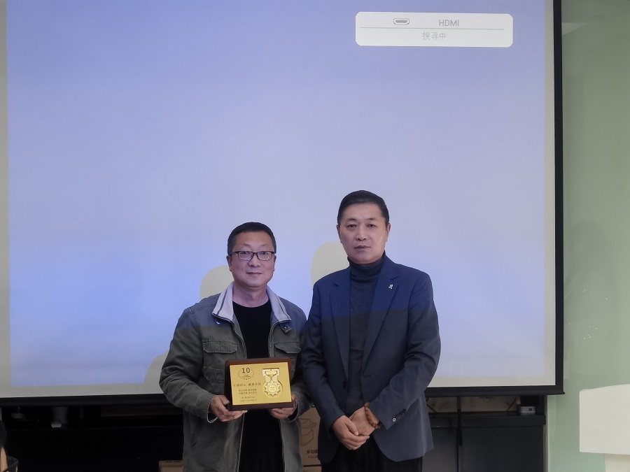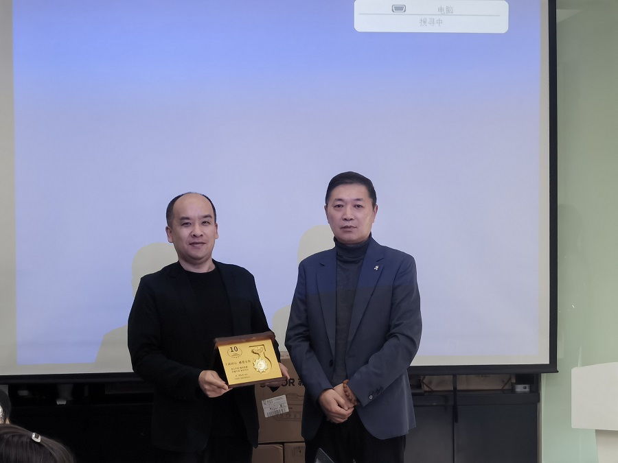 最后在设计师周端介绍徽章释义后,公司组织了二十周年纪念徽章颁发仪式。