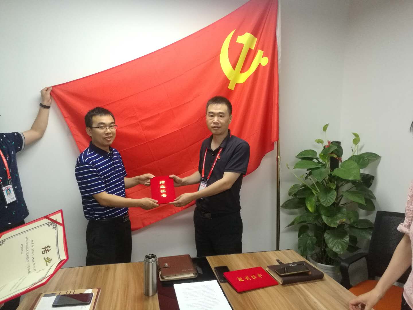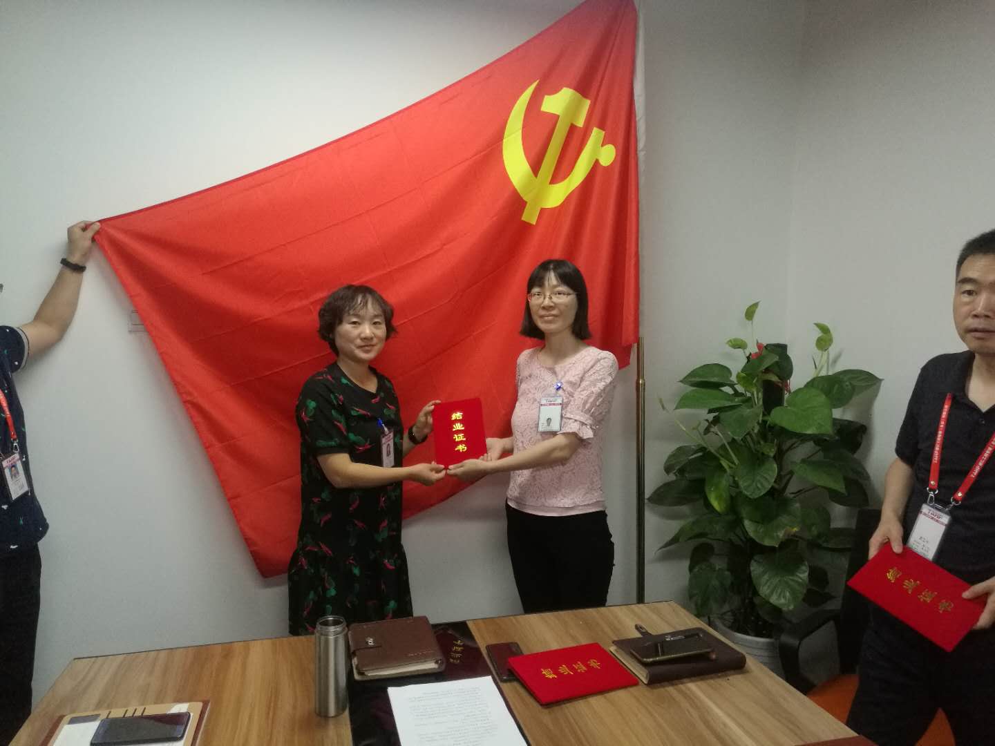 首先,五名入党积极分子分别就参加园区组织的入党积极分子培训谈了自身的学习体会,同时入党培养人也针对培养对象进行了互动交流;接着,入党培养人分别给培养对象颁发了结业证书;最后,党支部书记詹芙蓉围绕党的性质和宗旨给大家上了一堂微党课。